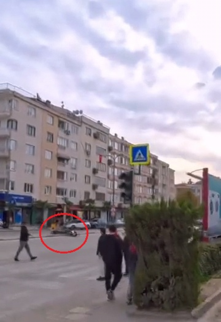 Bursa'nın İnegöl ilçesinde devrilen motosikletten düşen sürücü yaralandı. Kaza, kask kamerasına yansıdı.