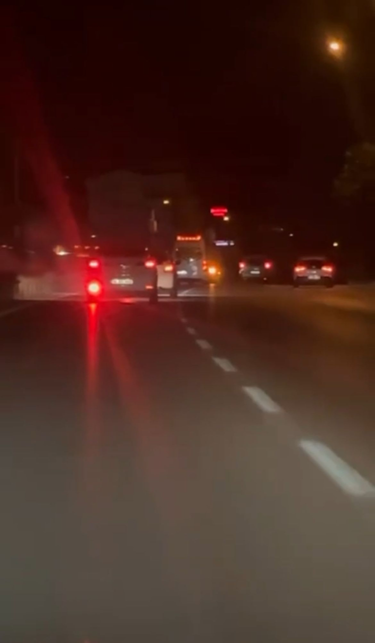 Olayın yaşandığı güzergâhta diğer sürücülerin tepki verdiği görüldü.
