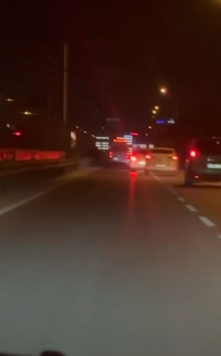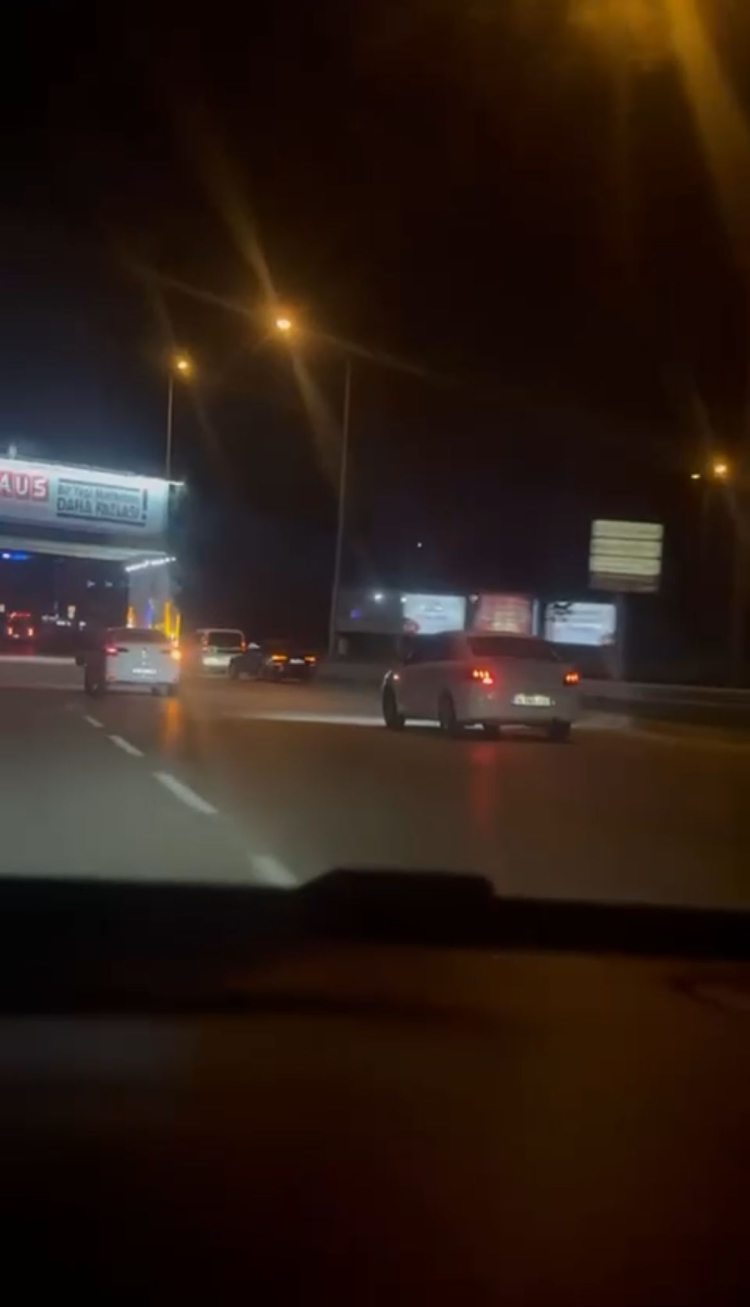 O anlar bir başka araç sürücüsü tarafından cep telefonuyla kaydedildi. Görüntülerde, iki aracın zaman zaman birbirlerinin önüne kırdığı ve trafiğin akışını tehlikeye soktuğu anlar yer aldı.