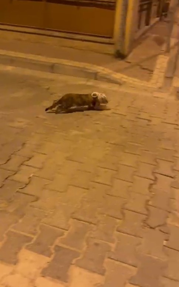 Bursa'da kedinin başına poşet geçirip bağladılar