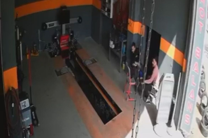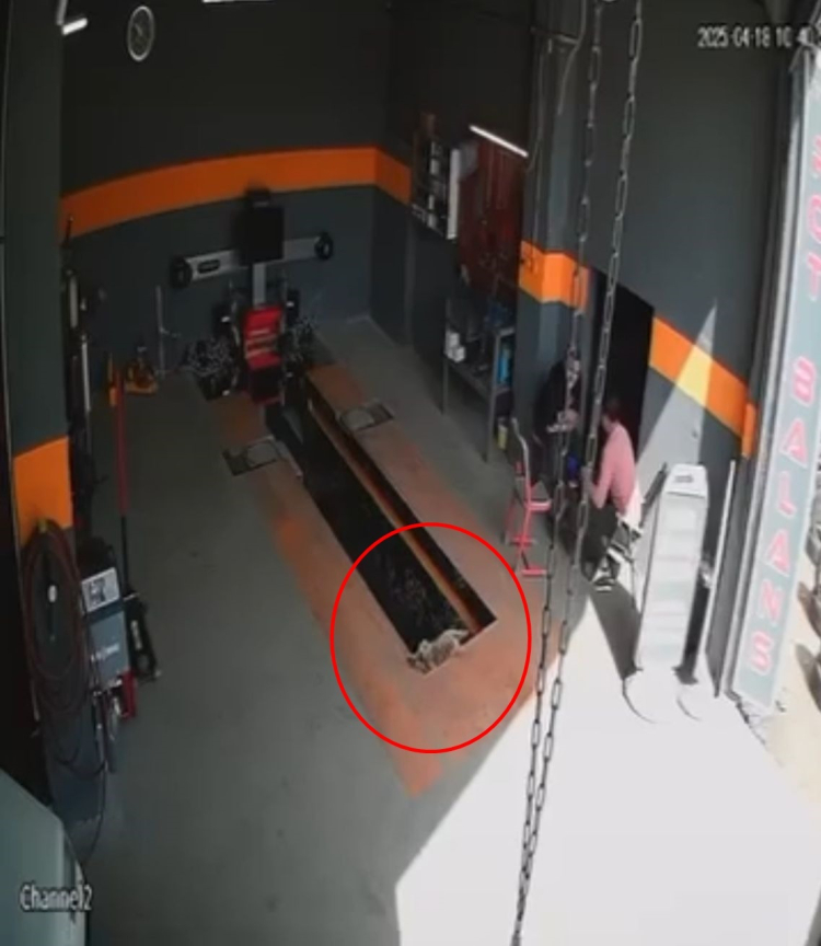 Bursa'da oto tamircideki raylı kanal krikosuna düşen kedi, kurtarıldı. Kedinin düştüğü an, kameraya yansıdı.