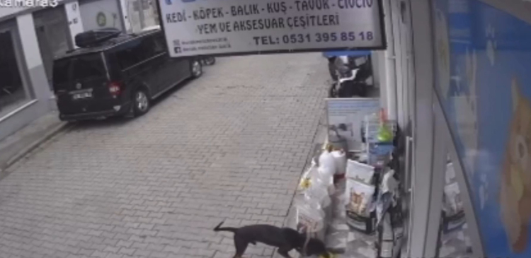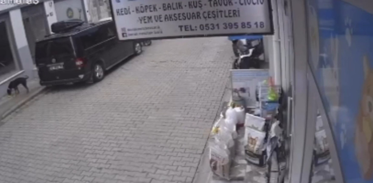 İznik ilçesinde petshop işletmecisi Burak Oruç, sabah dükkanın önünde sokak hayvanları için koyduğu kabı göremeyince güvenlik kamerasını izledi.