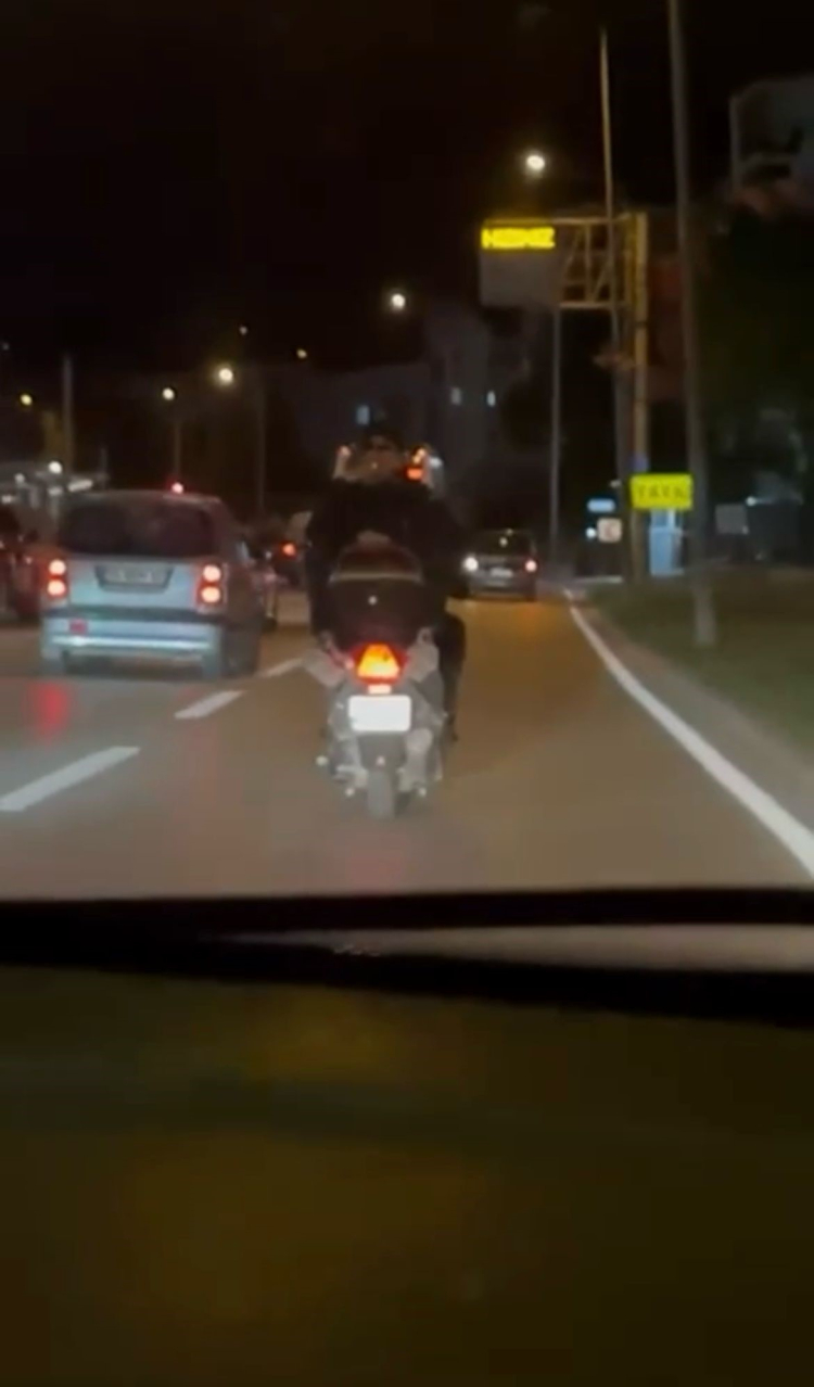 Bursa'da ters şeritte ilerleyen motosiklet sürücüsü, arkasına da yolcu aldı. Yolcu ise, motosiklete ters bindi. Tehlikeli anlar amatör kameraya yansıdı.