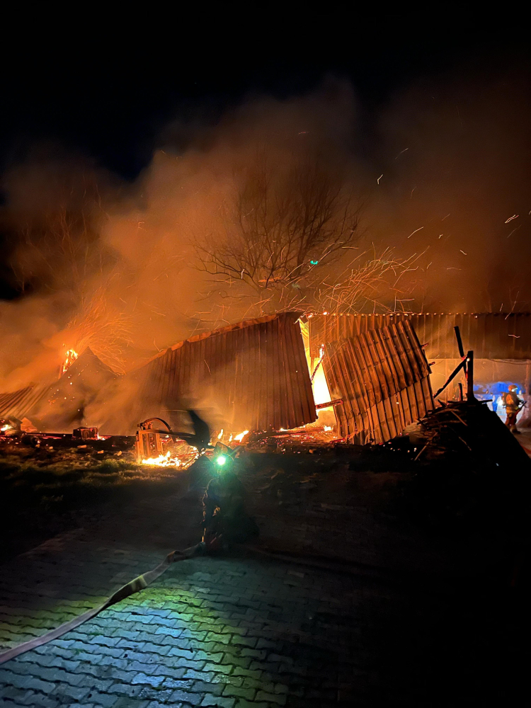 Bursa'nın İnegöl ilçesinde kullanılmayan kereste imalathanesi alev alev yandı.