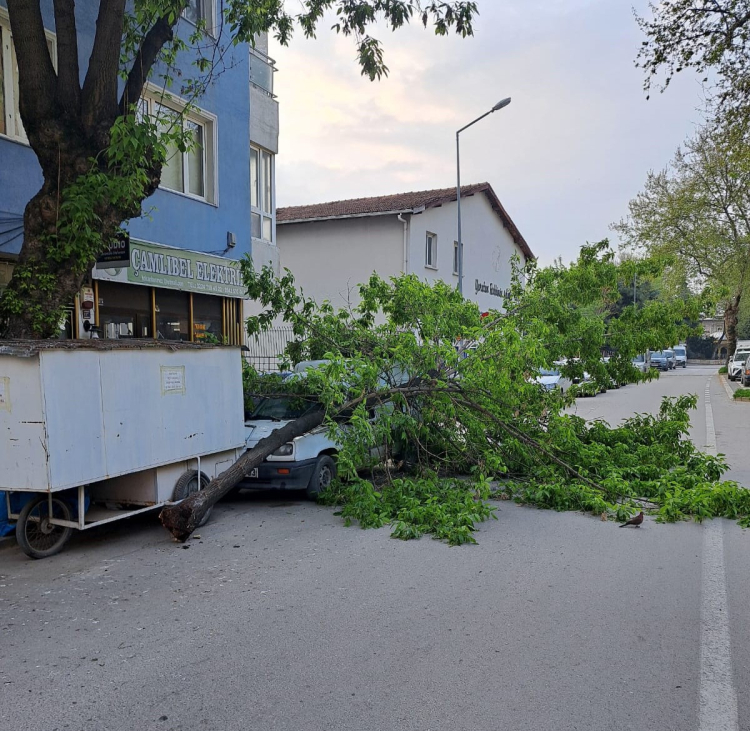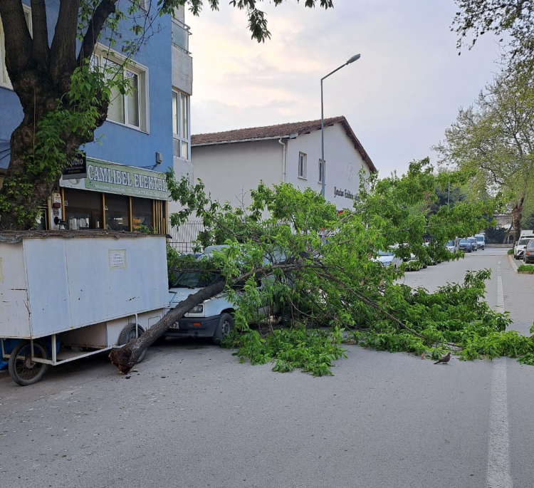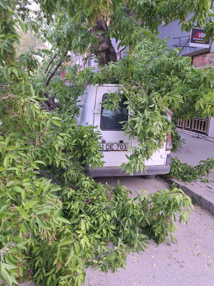 Bursa'nın İnegöl ilçesinde kırılan ağaç, kamyonetin üzerine devrildi. Araçta maddi hasar meydana geldi.