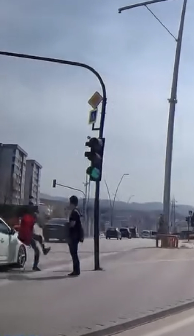 Bursa'da kırmızı ışıkta yola atladı! Facia teğet geçti