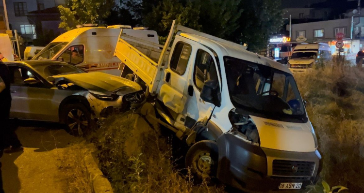 Bursa'da kontrolden çıkan araç park halindeki kamyonete çarptı! Yaralılar var