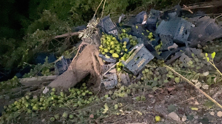 Bursa'nın İnegöl ilçesinde kontrolden çıkan dolma biber yüklü kamyonun şarampole yuvarlandığı kazada, 3 kişi yaralandı.