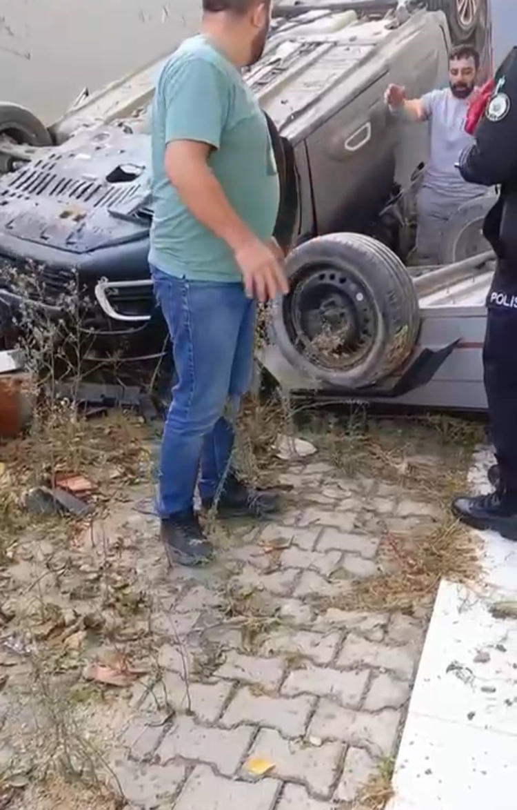 Takla atan otomobildeki sürücü araç içinde sıkışırken, site sakinleri yaralı adamın yardımına koştu.