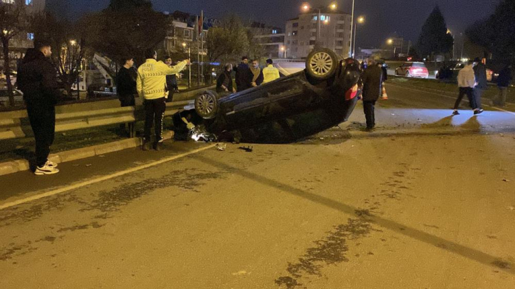 Ters dönen araçtaki sürücü kazayı hafif sıyrıklarla atlattı.