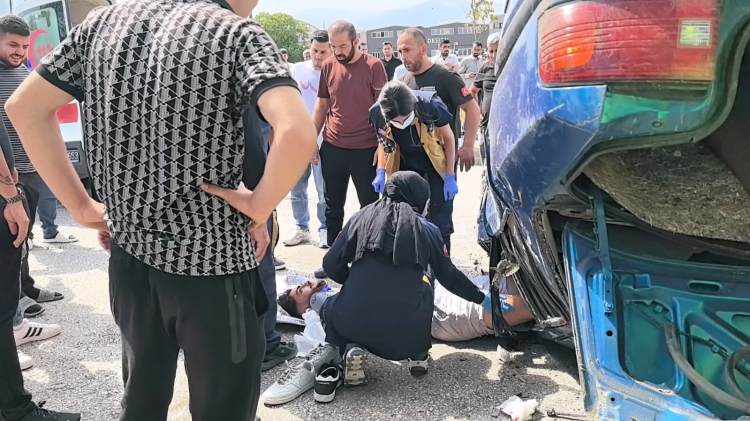 İnegöl’den Alanyurt yönüne seyir halinde olan Hakan A. (21) yönetimindeki 26 AHE 777 plakalı otomobil, sürücüsünün direksiyon hakimiyetini kaybetmesi sonucu kontrolden çıkarak refüje çarpıp takla atıp,