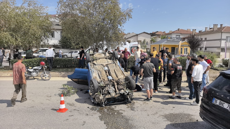 Bursa'nın İnegöl ilçesinde kontrolden çıkan otomobil refüje çarpıp takla atarak karşı yöne geçti. Kazada, 2 kişi yaralandı.
