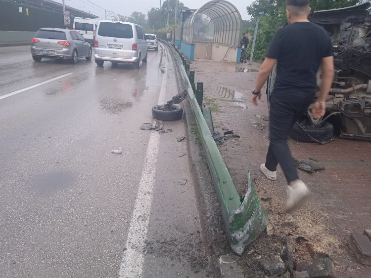 Edinilen bilgiye göre, A.S. idaresindeki 16 ANP 476 plakalı otomobil, yağışlı havanının etkisiyle sürücünün kontrolünden çıkarak önce bariyere çarptı ardından yan yattı çıktı.