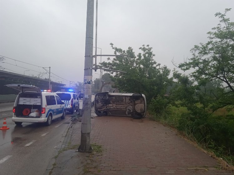 Bursa'da kontrolden çıkan otomobil yan yattı!