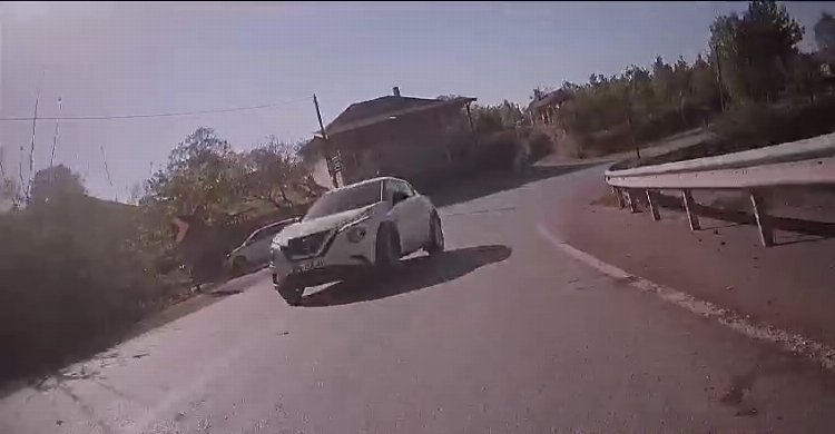 Akılalmaz olay, Bursa'nın Keles ilçesi Alaçam yolu üzerinde meydana geldi. Motosikletiyle gezintiye çıkan Serdar D., karşıdan gelen aracın şeridine aniden girmesi üzerine direksiyonu kırarak ölümden döndü.