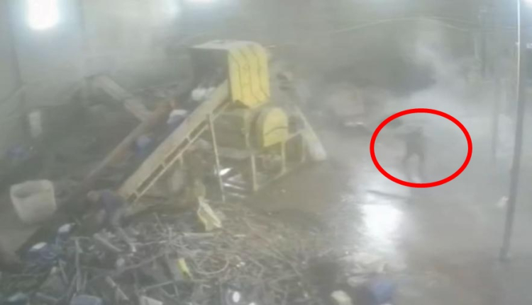 Bursa’da bir geri dönüşüm tesisinde çalışan kaynak ustası Ahmet Köse (32), devrilen 20 tonluk su varilinin altında kalmaktan son anda kurtuldu. O anlar iş yerinin güvenlik kamerasına saniye saniye yansıdı.