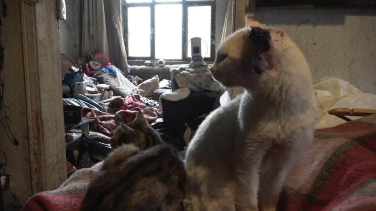 İçerideki ağır koku, yemek artıkları, yığınla çöp ve böcek istilası nedeniyle eve Temizlik işlerine bağlı ekipler sevk edildi.