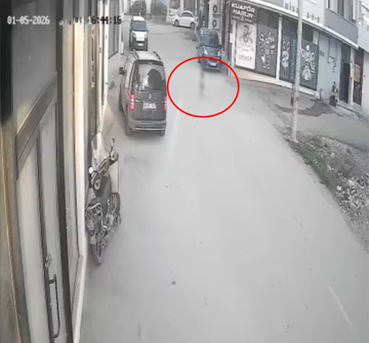 Bursa’da, aniden yola fırlayan 2 yaşındaki kız çocuğuna, hafif ticari araç çarptı. Aracın altında sürüklenen çocuğun hafif sıyrıklarla atlattığı kaza, iş yerinin güvenlik kamerasına yansıdı.