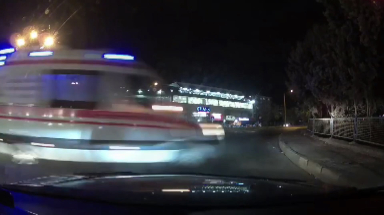 Kaza anı ise kırmızı ışıkta bekleyen bir otomobilin araç kamerasına yansıdı. Görüntülerde araç kırmızı ışıkta beklerken kontrolden çıkan ambulansın bahçeye uçtuğu anlar yer aldı.