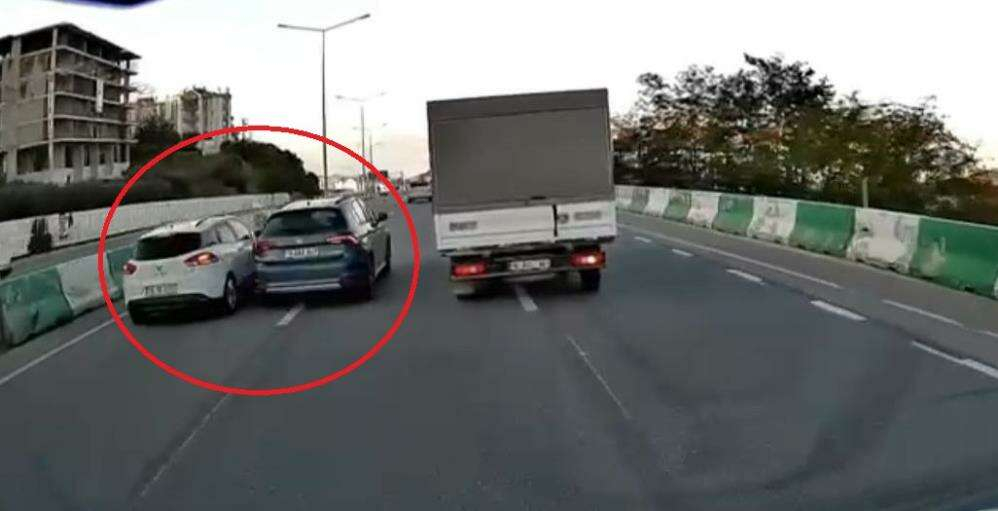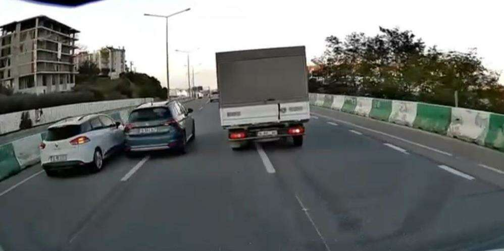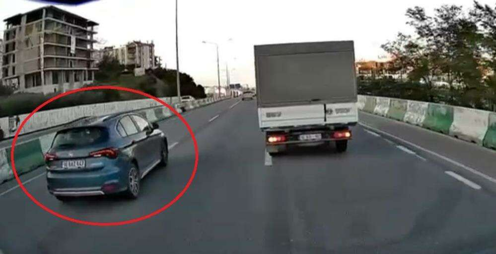 Seyir halindeki başka bir araç sürücüsü sol şeritte kalan aracı görünce hem refleks, hem de takip mesafesinin farkıyla kazayı ucuz atlattı.