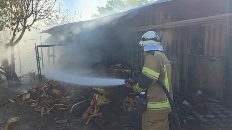 Rüzgarın etkisiyle kısa sürede büyüyen alevler, bahçedeki depoyu sardı.