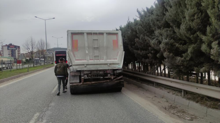 Kaza nedeniyle Yalova Bursa kara yolu bir süre tek şeritten sağlandı.