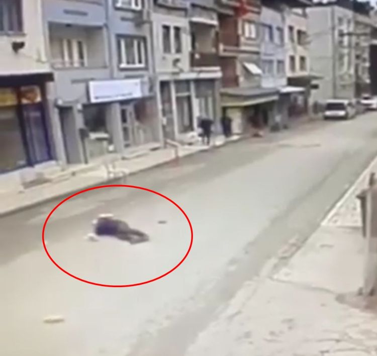 Bursa’da yolun karşısına geçmeye çalışırken motosikletin çarptığı E.İ. yaralandı. Motosiklet sürücüsü M.E.İ. kaçarken, kaza çevredeki bir iş yerinin güvenlik kamerasına yansıdı.