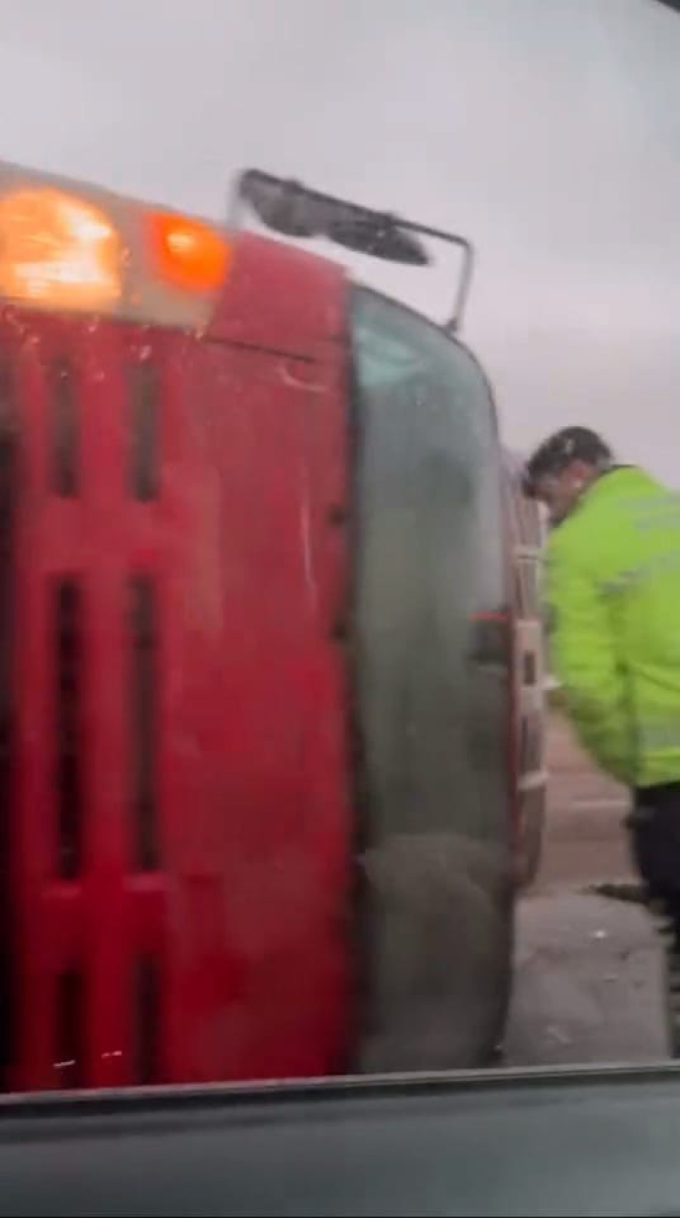 Çarpmanın etkisiyle kamyon devrildi.