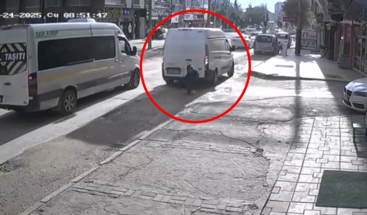 Bursa’da, sürücüsünün geri manevra yaptığı kapalı kasa minibüs, bu sırada arkasında yürüyen yayaya çarptı. O anlar bir iş yerinin güvenlik kamerasına yansıdı.