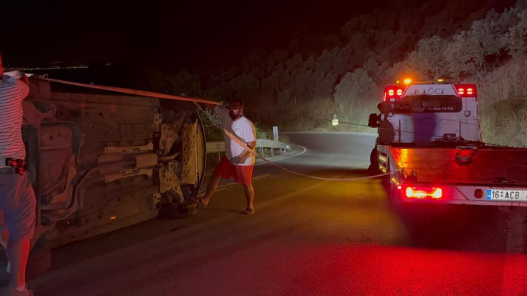 Yol, takla atan araç sebebiyle bir süreliğine trafiğe kapanırken, araç ise çekici yardımıyla yoldan kaldırıldı.
