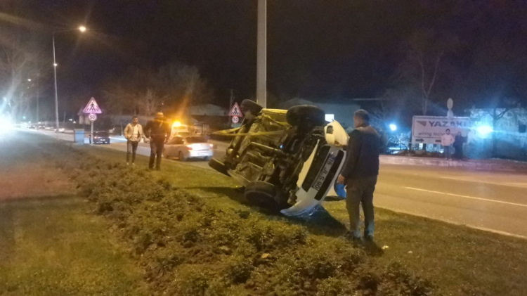 İ.F.T, (26) yönetimindeki 16 JLS 90 plakalı otomobil, Güzelyalı Kavşağı'nda sürücüsünün direksiyon hakimiyetini kaybetmesi sonucu refüje devrildi.