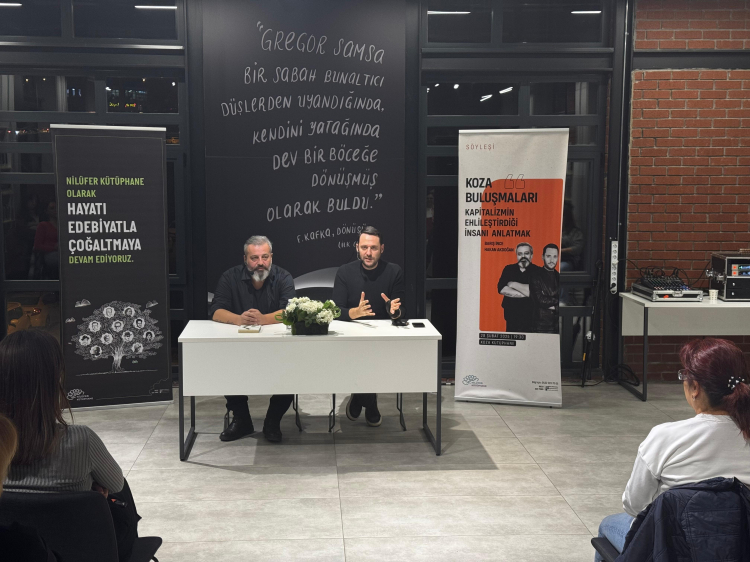 Nilüfer Belediyesi’nin Görükle’de hizmete açtığı Koza Kütüphane’de düzenlediği “Koza Buluşmaları”na bu ay yazar Barış İnce konuk oldu. Moderatörlüğünü Hakan Akdoğan’ın yaptığı söyleşide “Kapitalizmin Ehlileştirdiği İnsanı Anlatmak” üzerine konuşuldu. Edebiyatseverlerin yoğun ilgi gösterdiği söyleşide konuşan Barış İnce, kapitalizmin yarattığı yabancılaşma kavramına değindi. Kapitalizmin içine doğduğumuz için çok da farklılaşamadığımızı ifade eden İnce, “Son çıkan ürüne yabancısın. Mesela telefon üreten bir fabrikada vida sıkan bir işçisin. Üretim bandının içindesin. Ama sonuçtan habersizsin ve o telefonu da pahalı olduğu için alamayabiliyorsun. Bankada çalışıyorsunuz. Bir şeyler satmaya çalışıyorsunuz. Ancak onun karlılığından haberiniz yok” dedi. Tüketim kültürü ile insanın gözünün boyandığını savunan İnce, “Meta fetişizmi var. Meta dediğimiz, ticari mala bir coşku duyuyoruz. Kapitalizm bu coşkularımızı tetikliyor. Bunu da reklamlarla yapıyor. O sana dayatılan ihtiyaç nedeniyle kapitalizmin parçası haline geliyorsun. Hepimiz de bunun içindeyiz” diye konuştu.