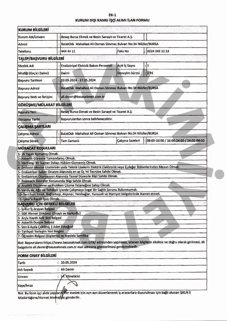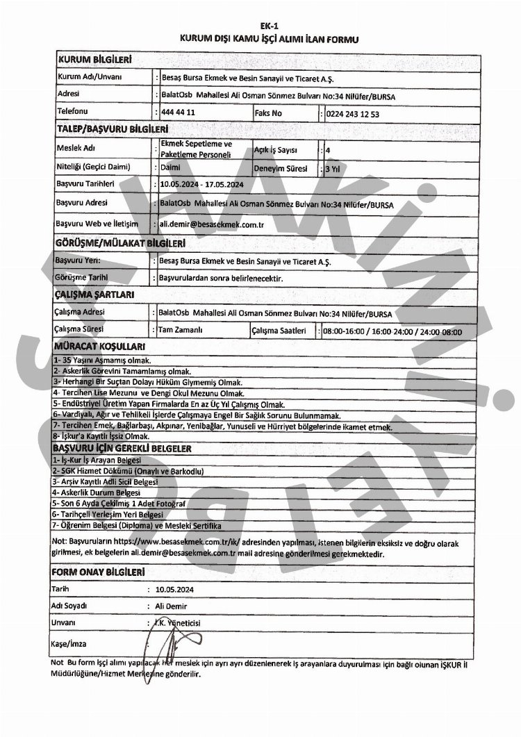 İşte iş ilanlarının ayrıntıları...