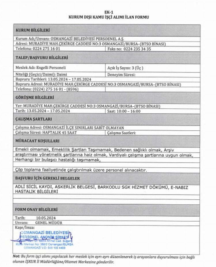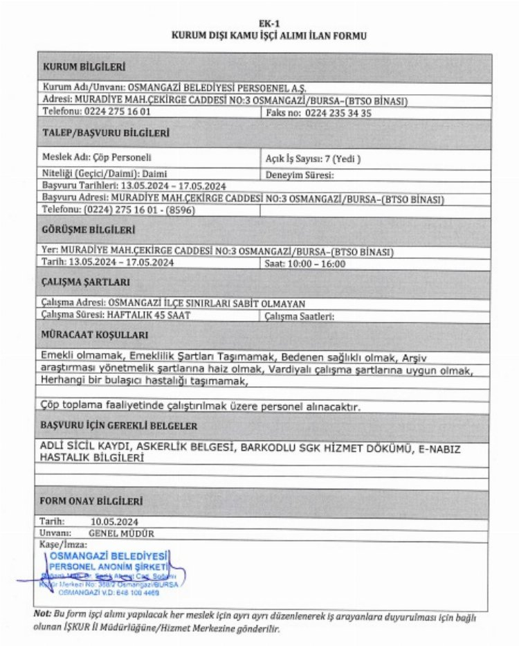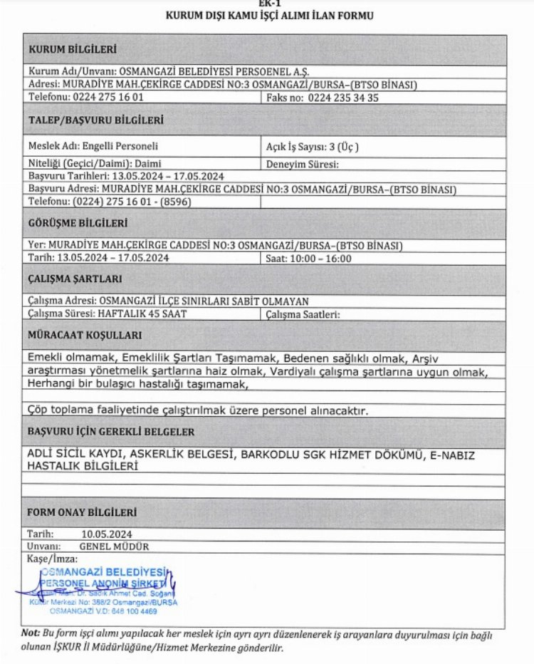 Bu kapsamda Bursa'da belediyelerin KPSS şartsız kamu personeli iş ilanları dikkat çekiyor.