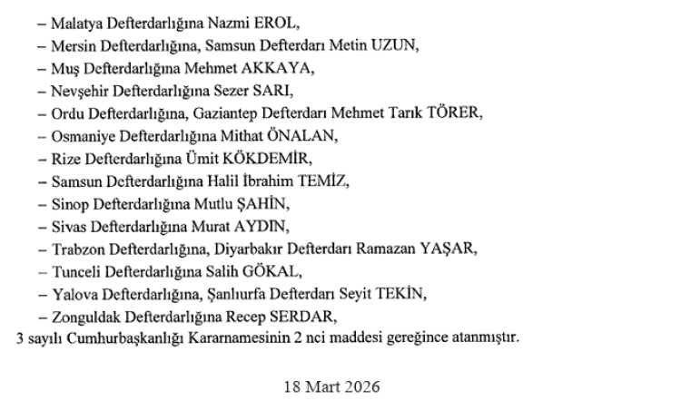 Ayrıca Adana, Adıyaman, Afyonkarahisar, Ağrı, Amasya, Aydın, Batman, Bingöl, Burdur, Çanakkale, Çorum, Denizli, Diyarbakır, Düzce, Erzincan, Eskişehir, Gaziantep, Giresun, Hatay, Isparta, Kahramanmaraş, Karabük, Karaman, Kars, Kırıkkale, Kırşehir, Kilis, Konya, Kütahya, Malatya, Mersin, Muş, Nevşehir, Ordu, Osmaniye, Rize, Samsun, Sinop, Sivas, Trabzon, Tunceli, Yalova ve Zonguldak illerinin defterdarları belli oldu.