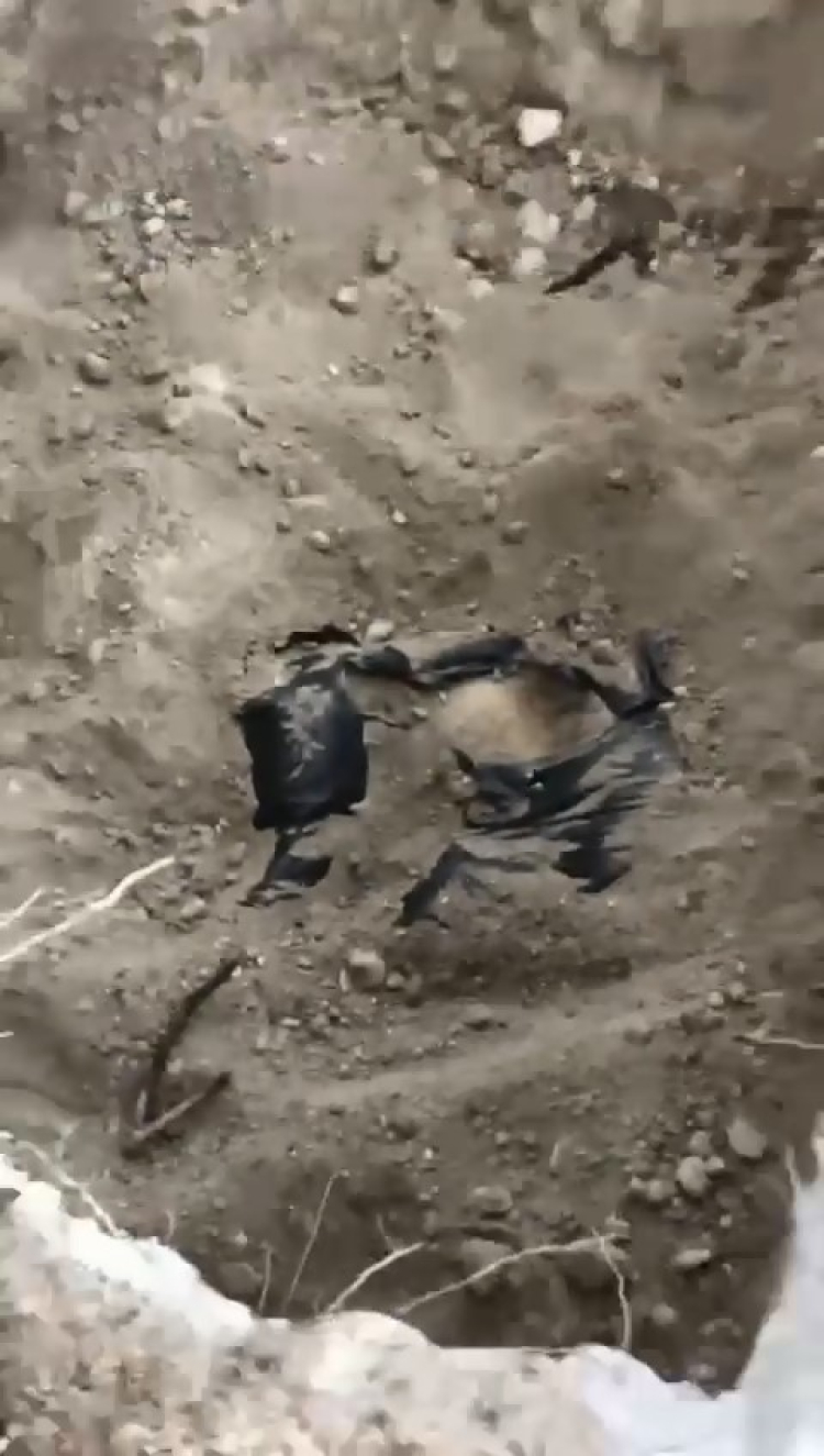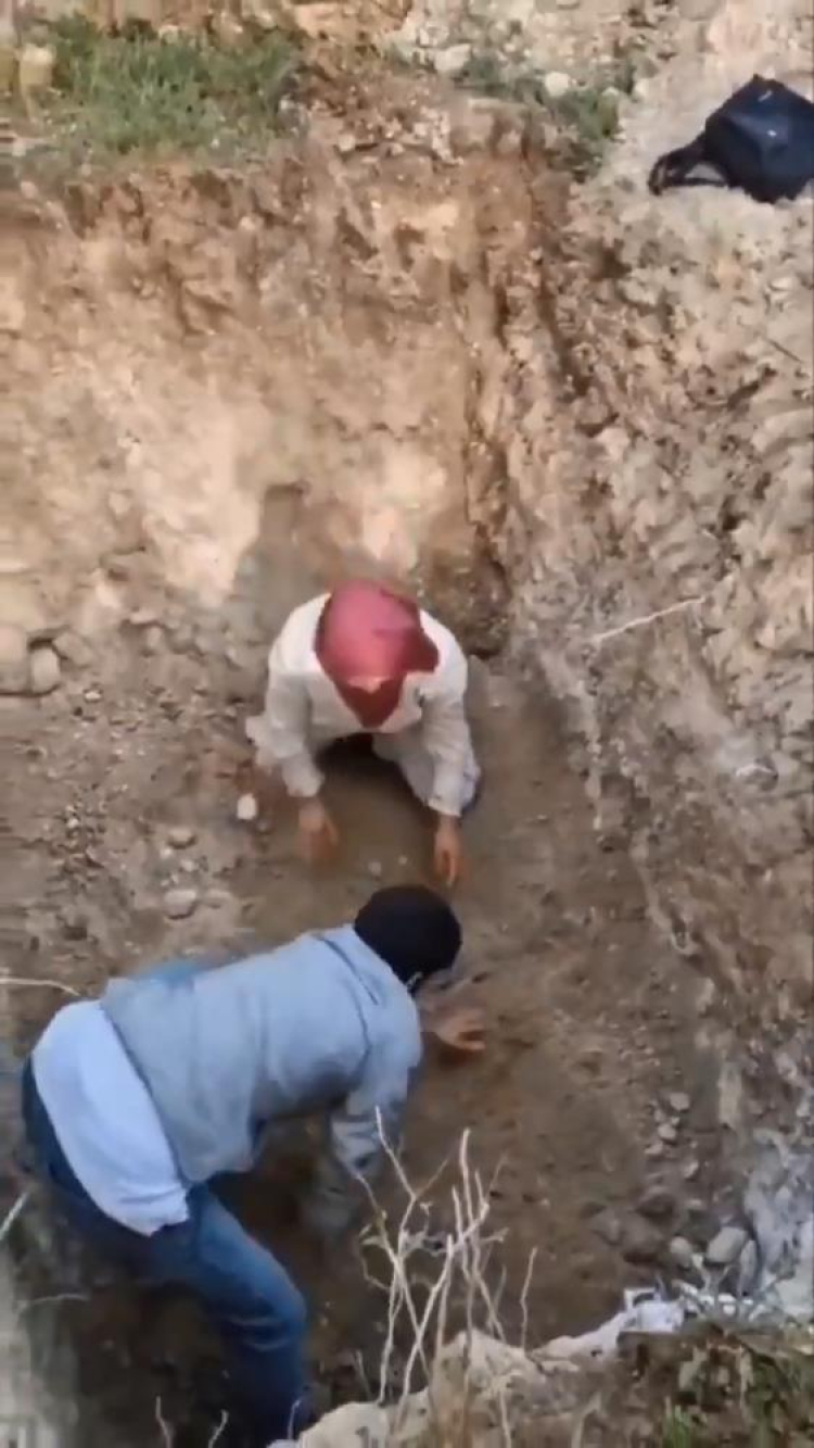 Mezar kazma işlemi sırasında bir kişinin "Kendinizi gömün buraya" dediği görüldü.