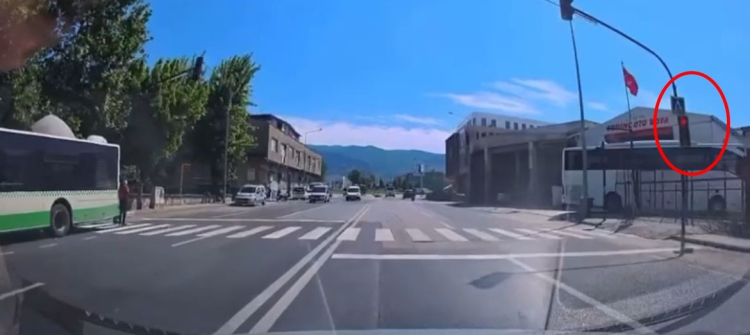 Osmangazi ilçesi Veysel Karani Mahallesi'nde yolcu minibüsünün sürücüsü, kırmızı ışıkta durmayıp ters şeride girerek, bekleyen araçları geçti.