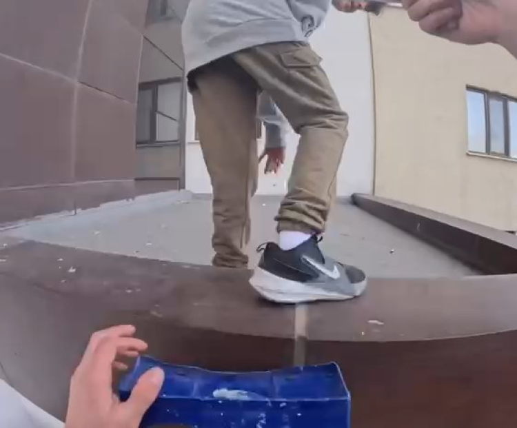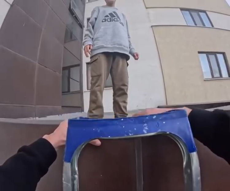 O sırada binaya sipariş getiren kuryeyi gören arkadaşları yardım istedi. Kurye, önce siparişini teslim etti ardından çocuğu kaldığı yerden merdivenle kurtardı.