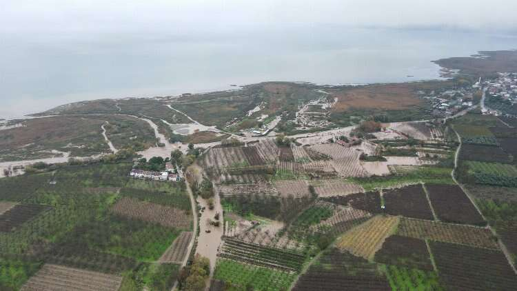 Bursa'nın İznik ilçesinde geceden itibaren etkili olan sağanak nedeniyle taşan Çakırca Deresi, çevresindeki tarım arazilerini su altında bıraktı. Ekiplerin bölgedeki çalışmaları sürüyor.
