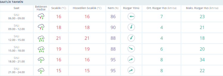 ÇARŞAMBA: Gök gürültülü sağanak yağışlı, 17 derece