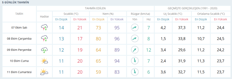 İŞTE BURSA İÇİN 5 GÜNLÜK HAVA DURUMU TAHMİNİ (7 EKİM 2025)