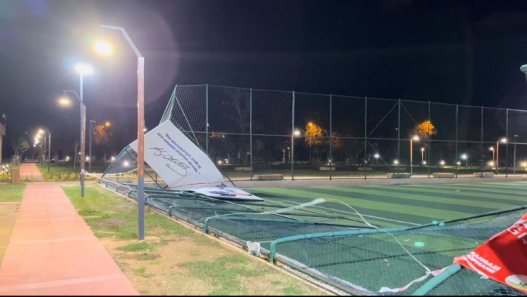 Merkez Osmangazi ilçesi Soğanlı Mahallesi'nde bulunan Soğanlı Millet Bahçesi'nin içindeki halı saha, şiddetli lodos yüzünden yerle bir oldu.