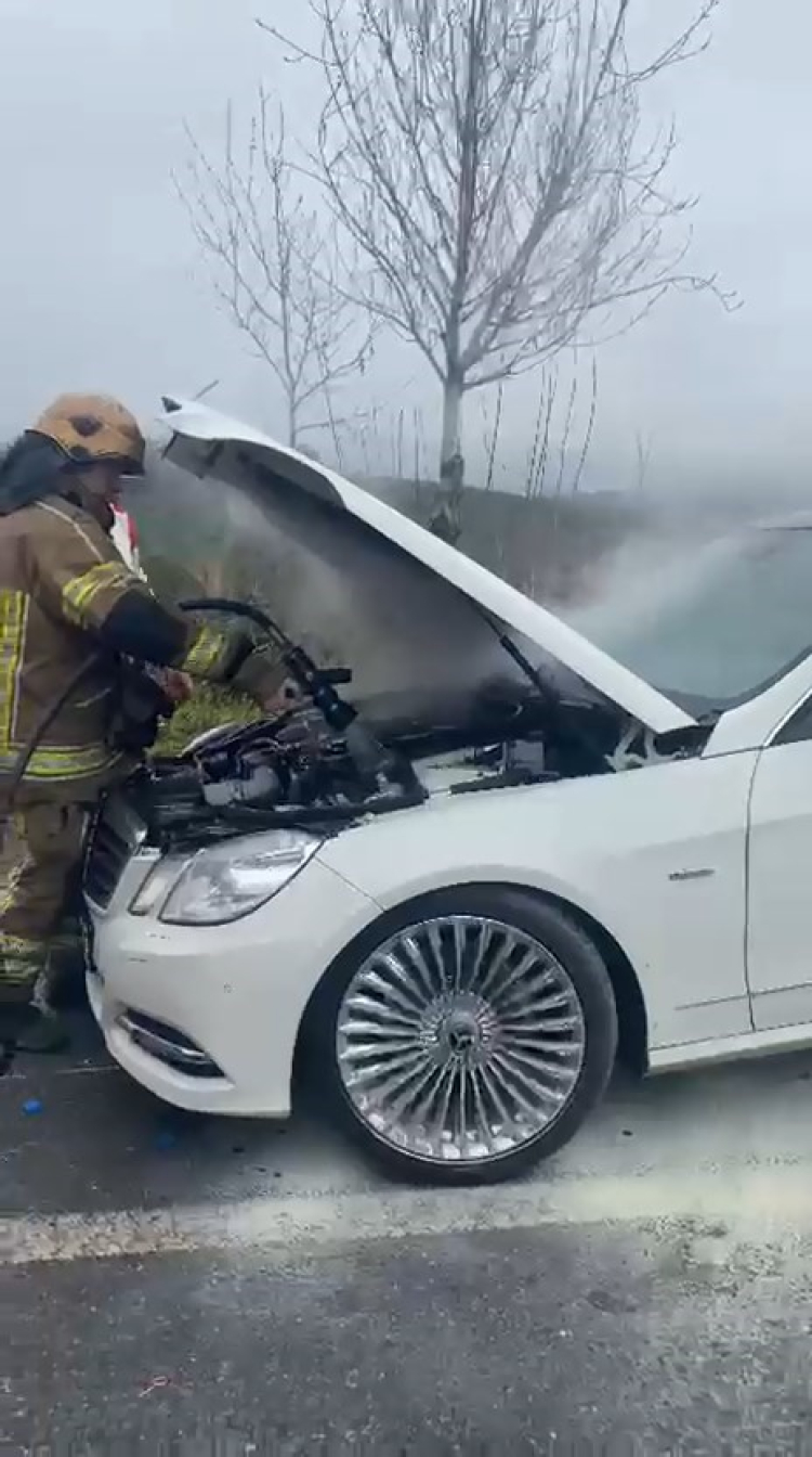 Edinilen bilgiye göre, lüks bir otomobilden aniden dumanlar yükseldi.