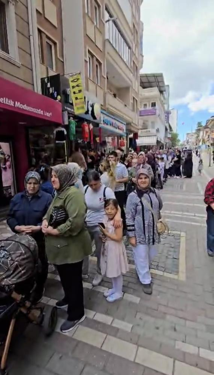 Sabahın ilk ışıklarından itibaren çekiliş için yüzlerce kişi mağaza önünde uzun kuyruklar oluştu.