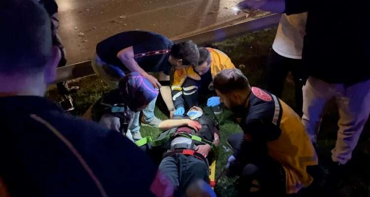 Çarpmanın etkisiyle metrelerce savrularak kaldırım ve bariyerlere çarpan otomobil, daha sonra Merinos İstasyonu’nun yaya alt geçidi merdivenlerine çarparak durdu. Kazada sürücüler ile otomobillerde bulunan 2 kişi yaralandı. Çevredekiler yaralıların yardımına koşarken durumu sağlık ekiplerine bildirdi. İhbar üzerine olay yerine polis, itfaiye ve sağlık ekipleri sevk edildi. İtfaiye ekipleri tarafından sıkıştıkları yerden çıkarılan yaralılar, sağlık ekipleri tarafından yapılan ilk müdahalenin ardından çevredeki hastanelere kaldırıldı.