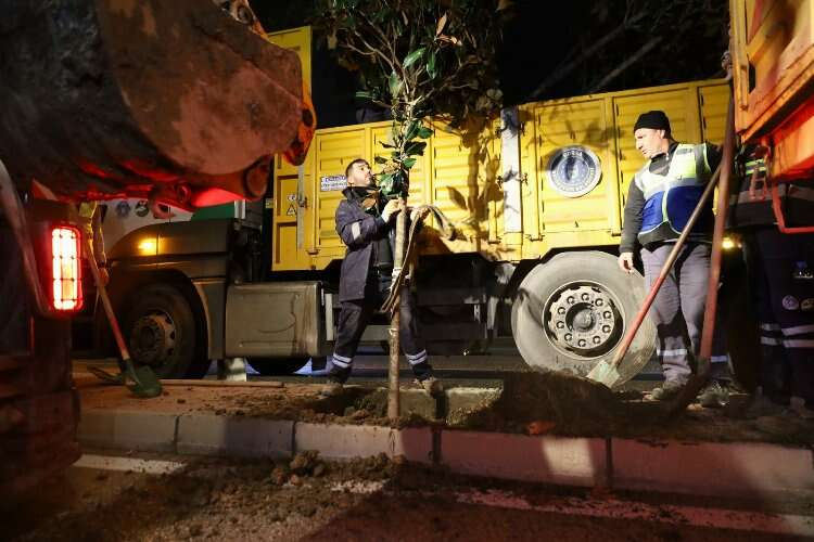 Büyükşehir Belediyesi Park ve Bahçeler Dairesi Başkanlığı koordinasyonunda Tarım Peyzaj A.Ş. ekipleri tarafından özellikle araç trafiğinin yoğun olduğu ana cadde ve bulvarlardaki orta refüjler ağaçlandırılıyor.