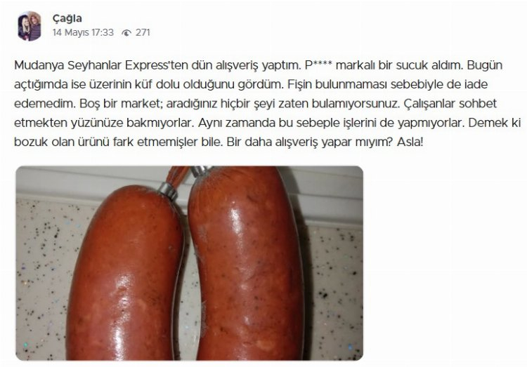 Mudanya'daki bir şubeden alışveriş yapan başka bir tüketicisi ise aldığı sucuğun küf dolu olduğunu öne sürdü.