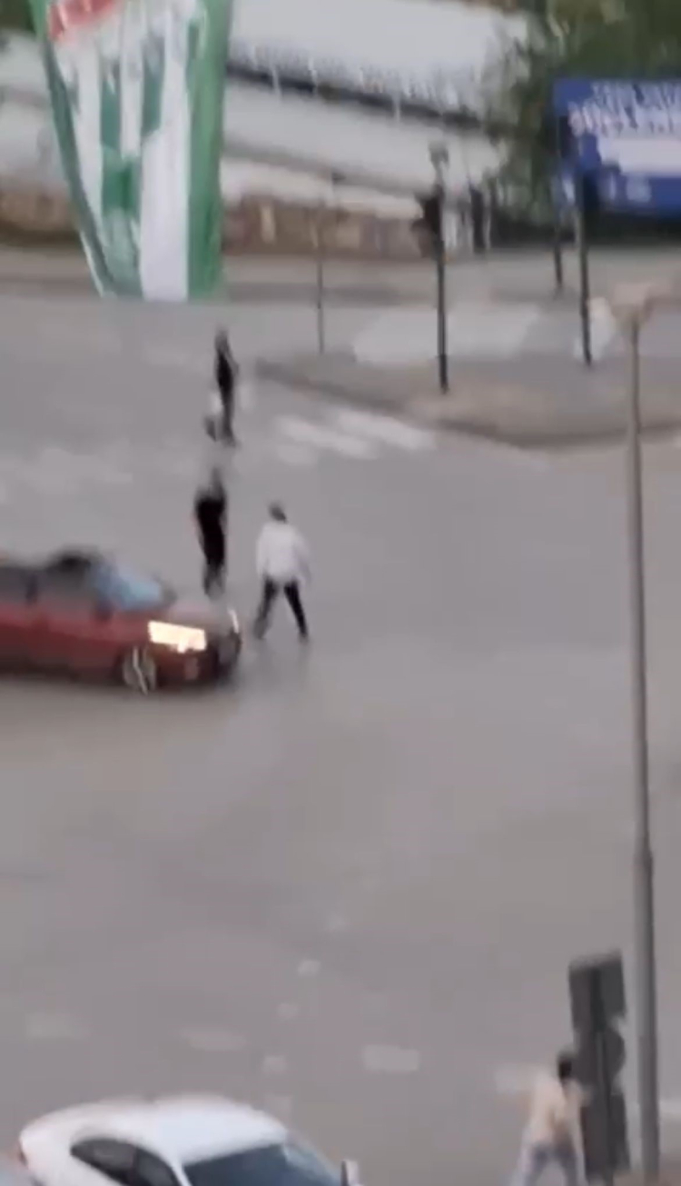 Olay, merkez Osmangazi ilçesi Gökdere Kavşağı'nda meydana geldi. Mendil satan gençler ile bir sürücü arasında sözlü tartışma çıktı.