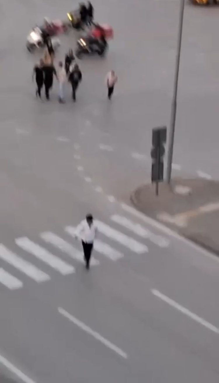 Sözlü tartışma kısa sürede alevlenerek kavgaya dönüştü. Kavga, bir süre sonra akan trafiğin ortasında kaldı. Tehlikeli anlar saniye saniye amatör kamera ile kaydedildi.