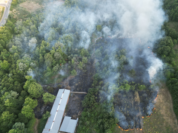 Gündüzlü Mahallesi'nde merada henüz belirlenemeyen nedenle yangın çıktı.